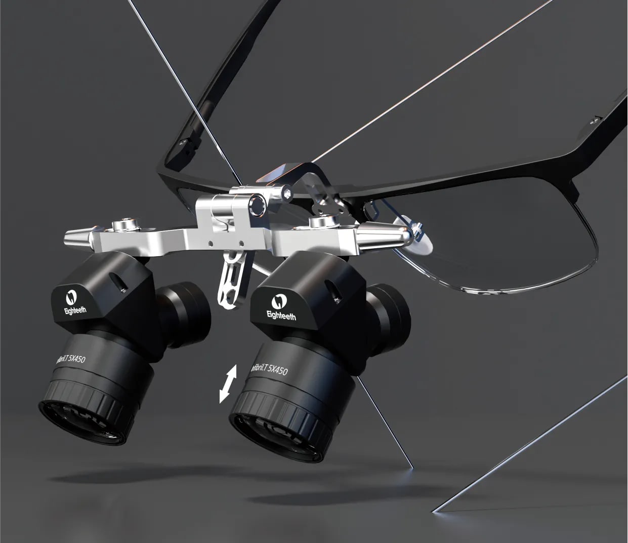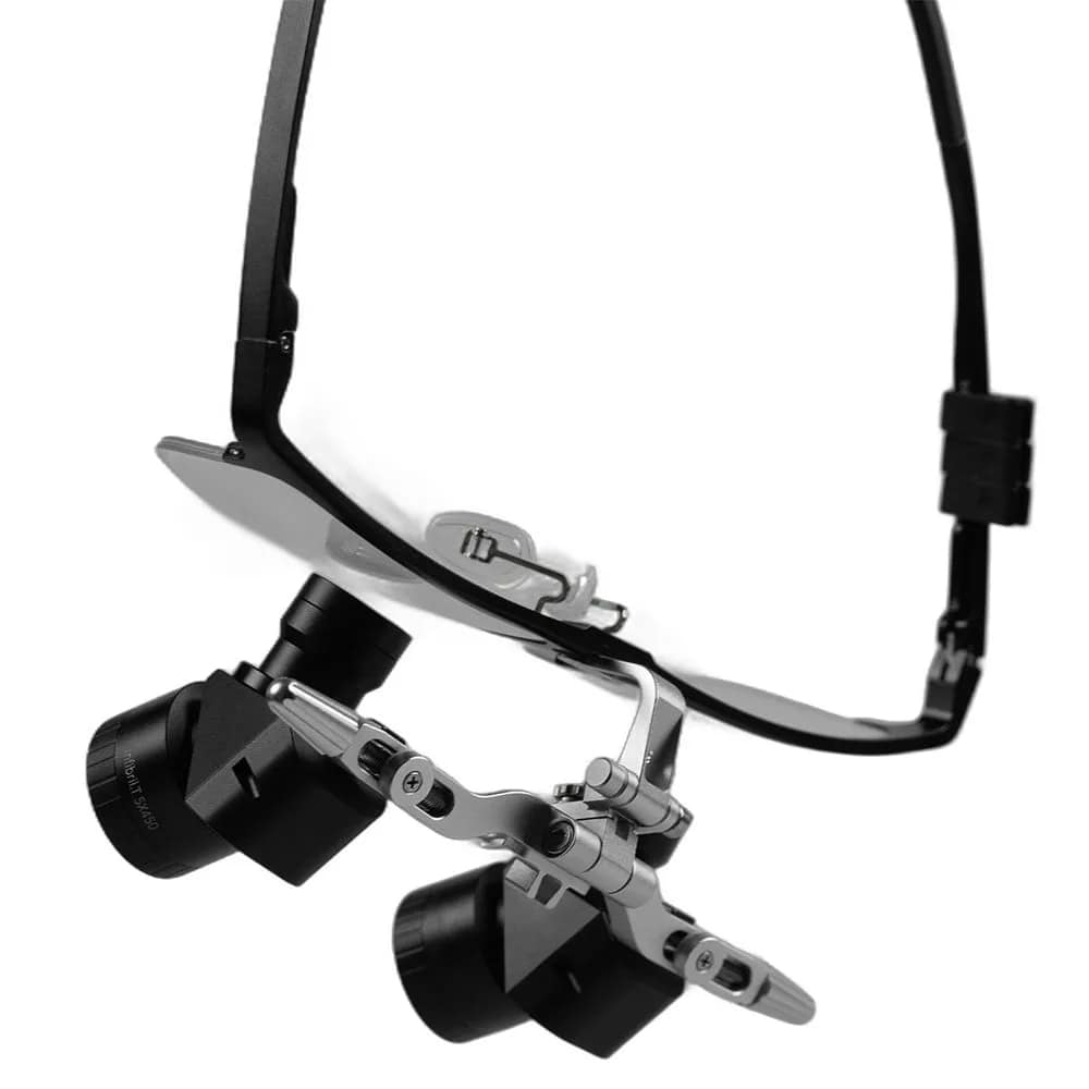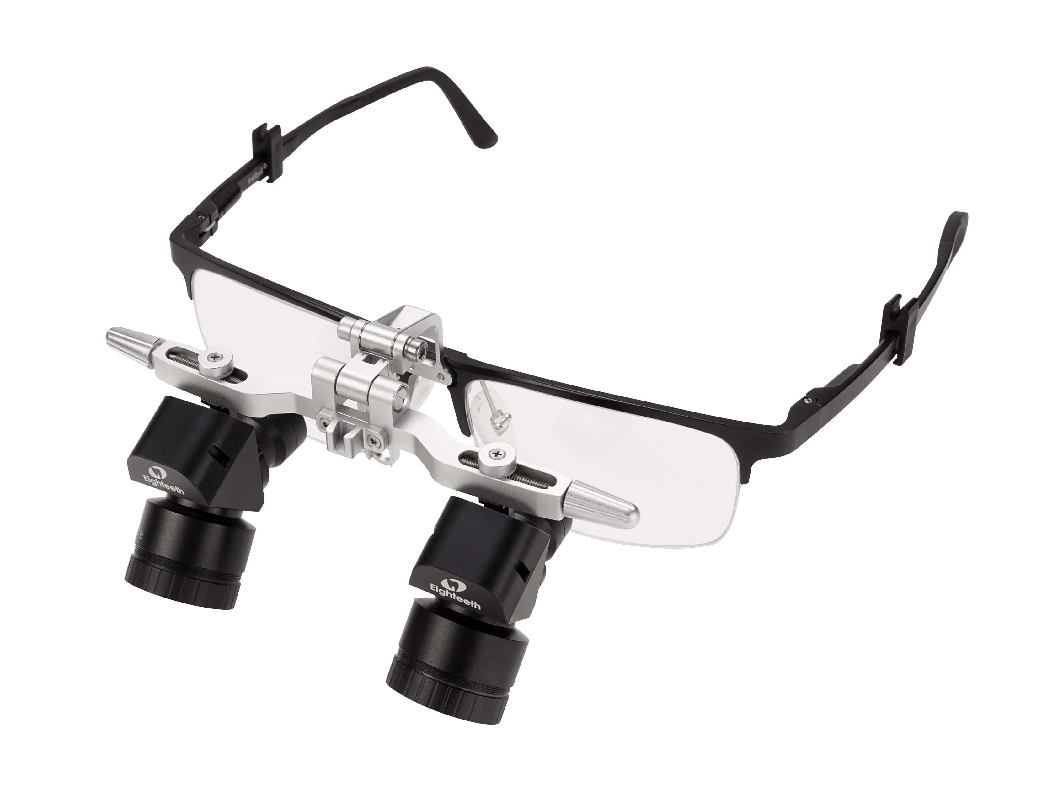Левое и правое фокусные расстояния можно регулировать отдельно (от 300 мм до 500 мм). Такое решение идеально подходит для стоматологов с разным зрением на левом и правом глазах (если разница в зрении между двумя глазами слишком велика, рекомендуется использовать эти лупы после коррекции зрения).