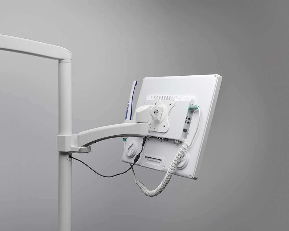 В комплект входит: интраоральная камера, монитор (17 дюймов, 1280×1024 Пикс.), держатель для монитора