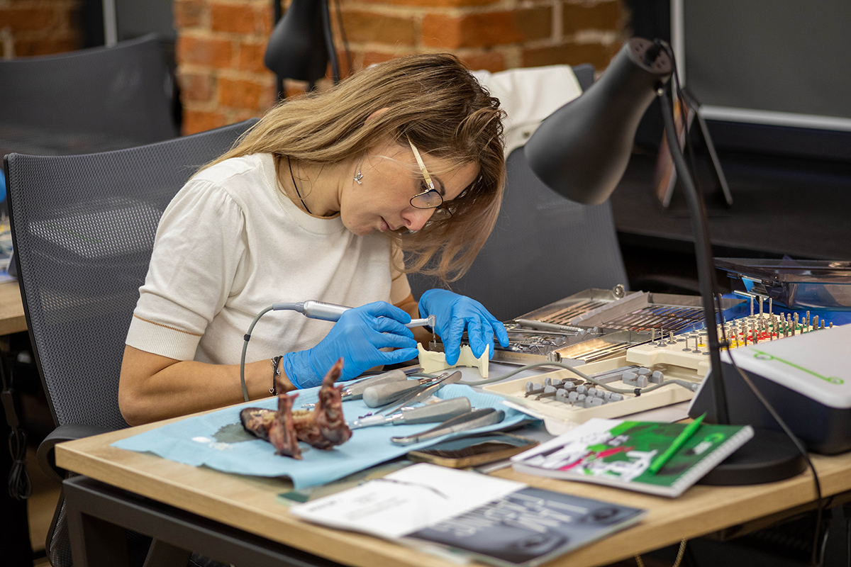 А на практической части разобрали принципы атравматичного удаления, нюансы установки имплантата в лунку, аугментация лунки с помощью ауто и ксено-материалов и многое другое.