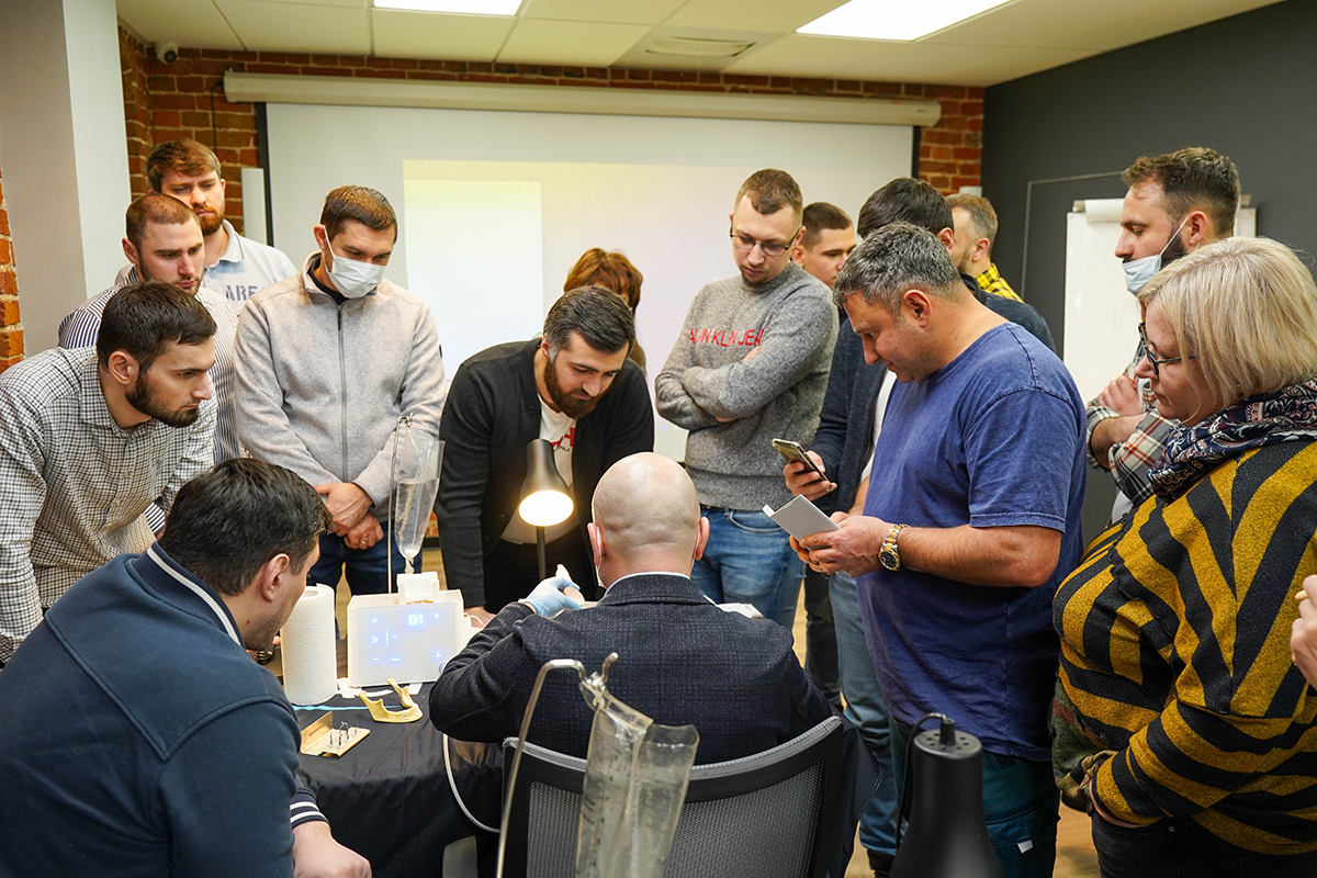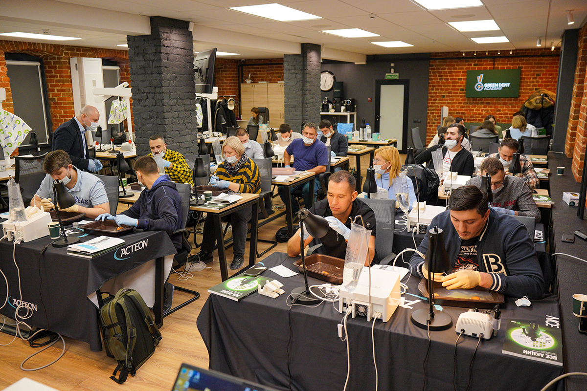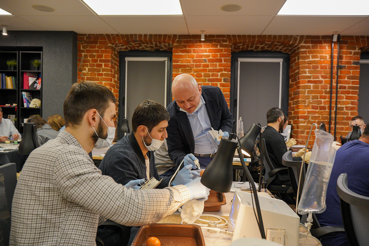 За дверью учебного центра Green Dent Academy слышны интересные вопросы, понятные объяснения лектора и необычный скрежет. Так звучит практический курс по пьезохирургии, на котором глава представительства Acteon в России, Артур Хавари, поделился ценными знаниями и обучил работе на самом мощном ультразвуковом аппарате Piezotome CUBE.