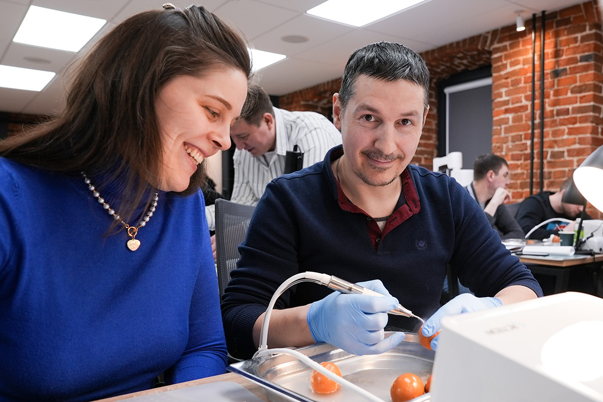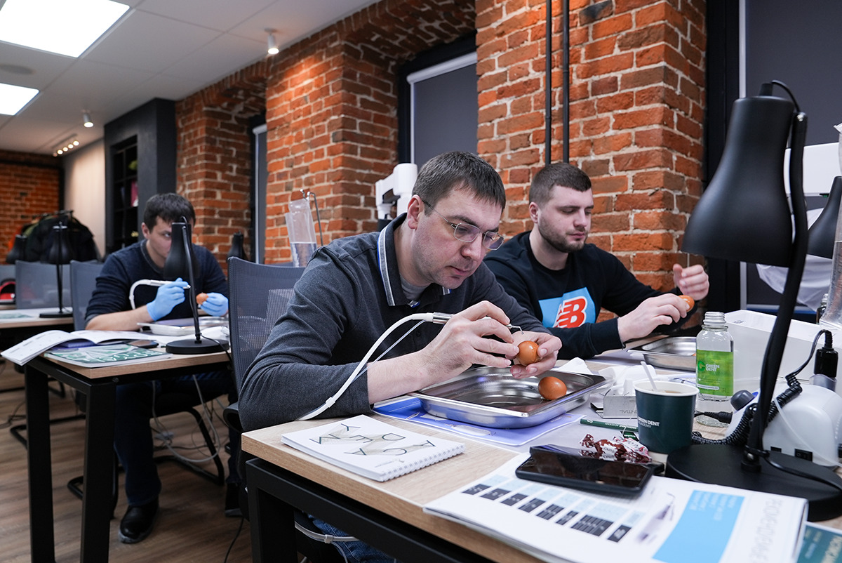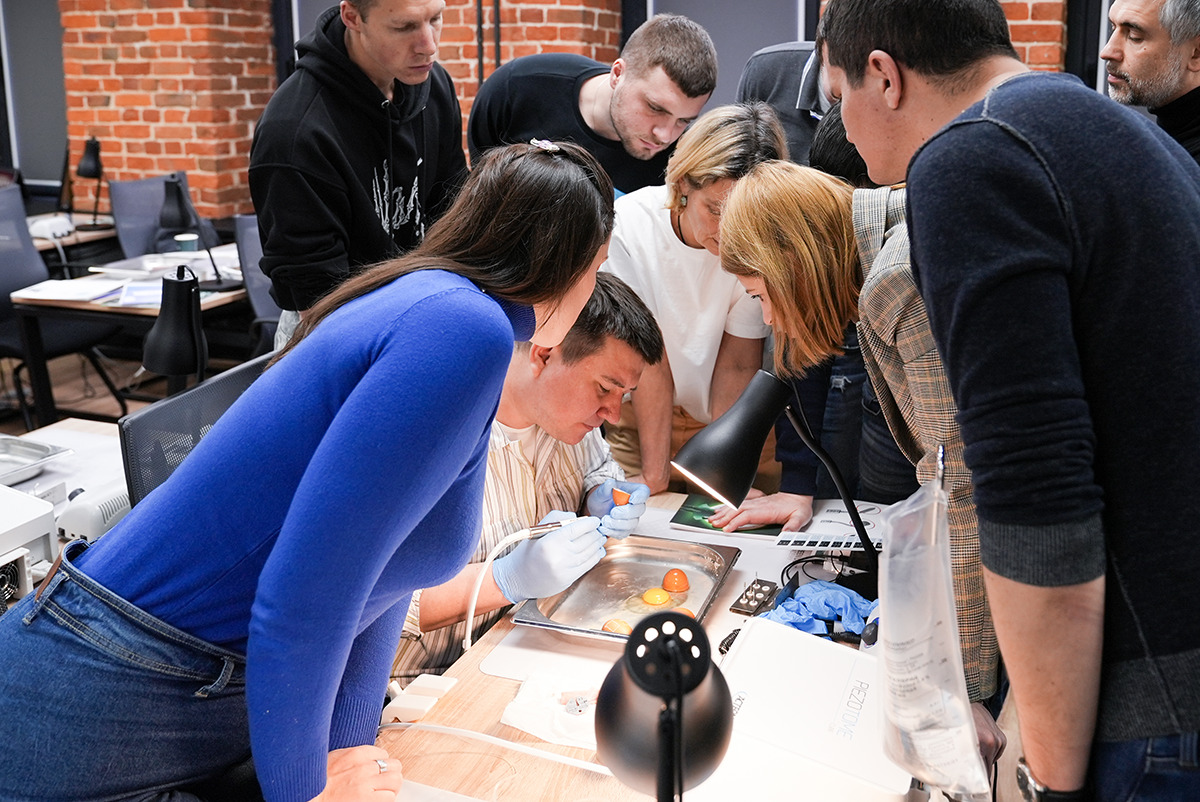 Смотрите фото и видеоотчёт с курса по ультразвуку и пьезохирургии и получайте заряд хорошего настроения от улыбок участников и лектора – Рината Шаймярдянова.