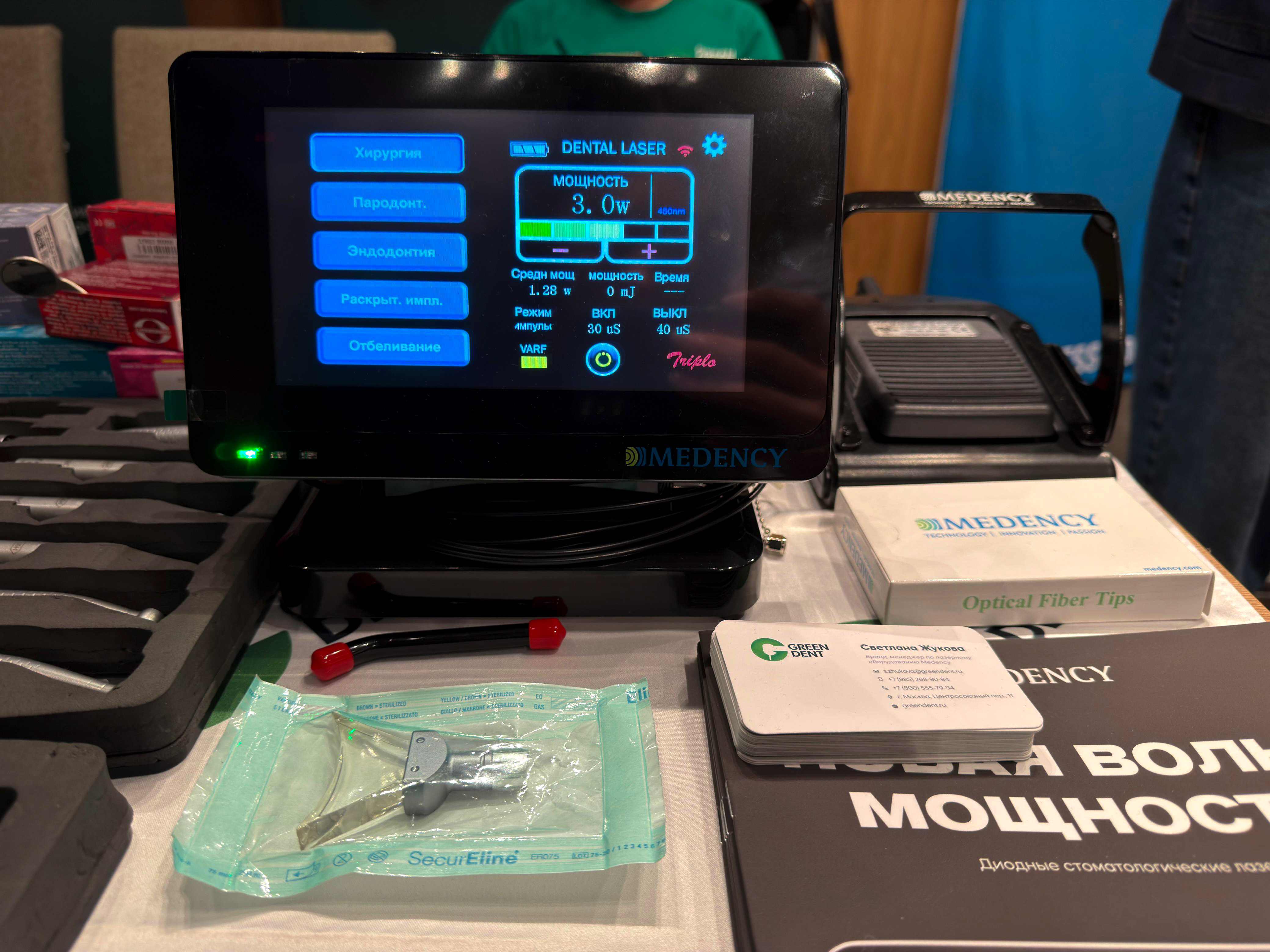 Его и многое другое инновационное стоматологическое оборудование на курс привезли специалисты компании GREEN DENT. Мы были рады встречи с каждым специалистом, спасибо за ваш интерес к нашей продукции, представленной на стенде: зеркала, бинокуляры, Piezomed, Implantmed, Piezomed plus и лазеры Medency.